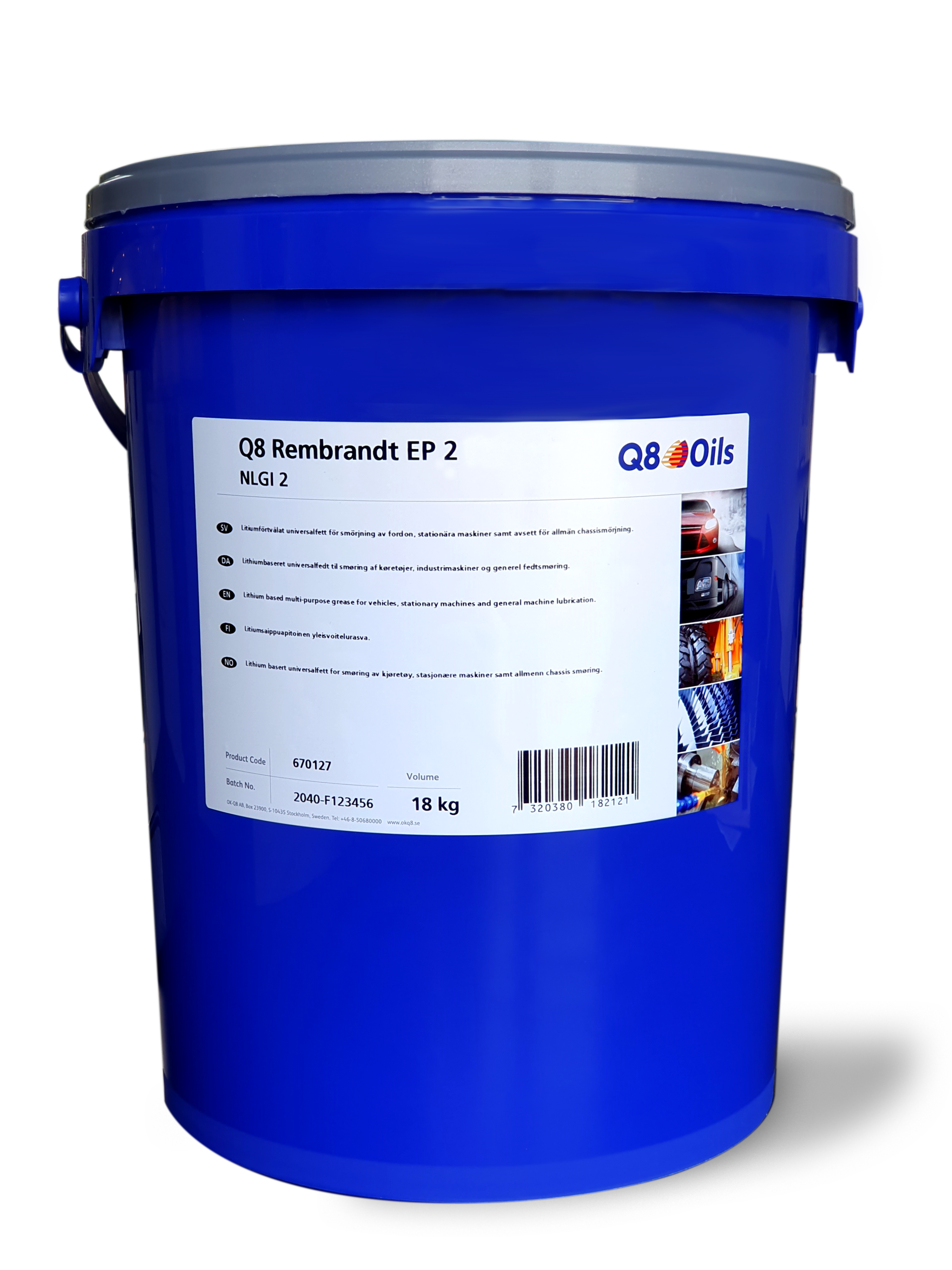 Q8 Rembrandt EP 2 HQ Litiumförtvålat universalfett med bra rostskyddande egenskaper och hög EP-förmåga för smörjning av fordon och stationära maskiner.